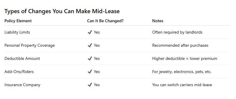 Can you adjust renters insurance in the middle of a lease?